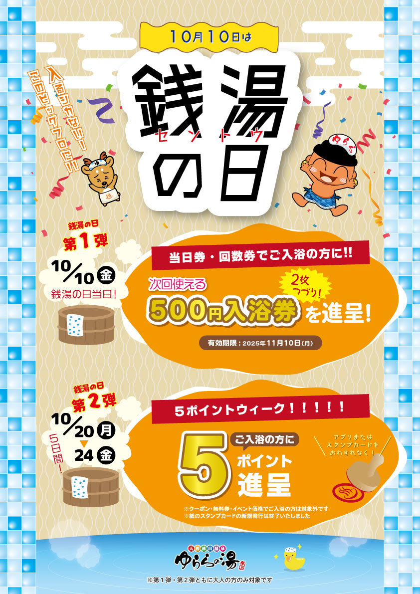 10月10日は1010(せんとお)の語呂合わせから【銭湯の日】に認定されています!