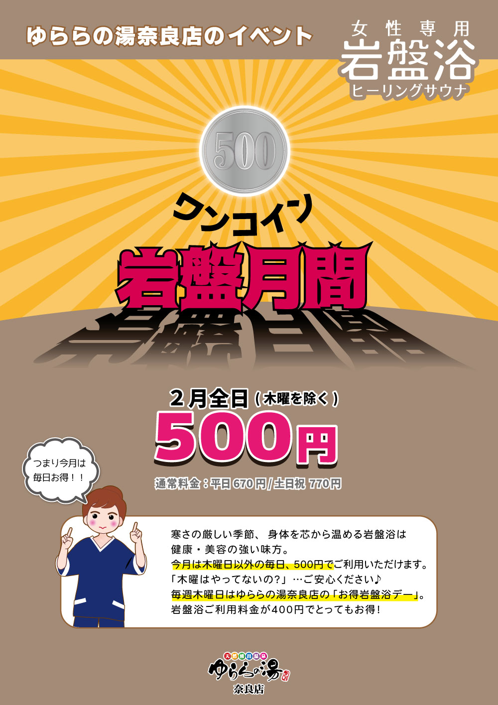 2月も岩盤浴が500円!