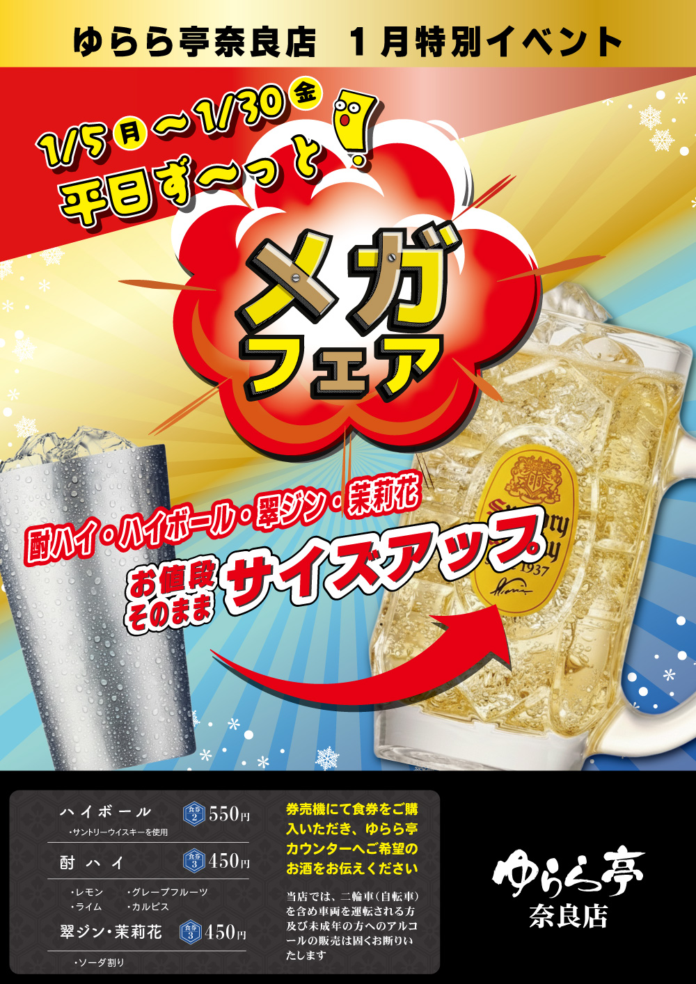 ハイボール・酎ハイ・翠ジン・茉莉花が “追加料金なし” でメガサイズに変更可能!