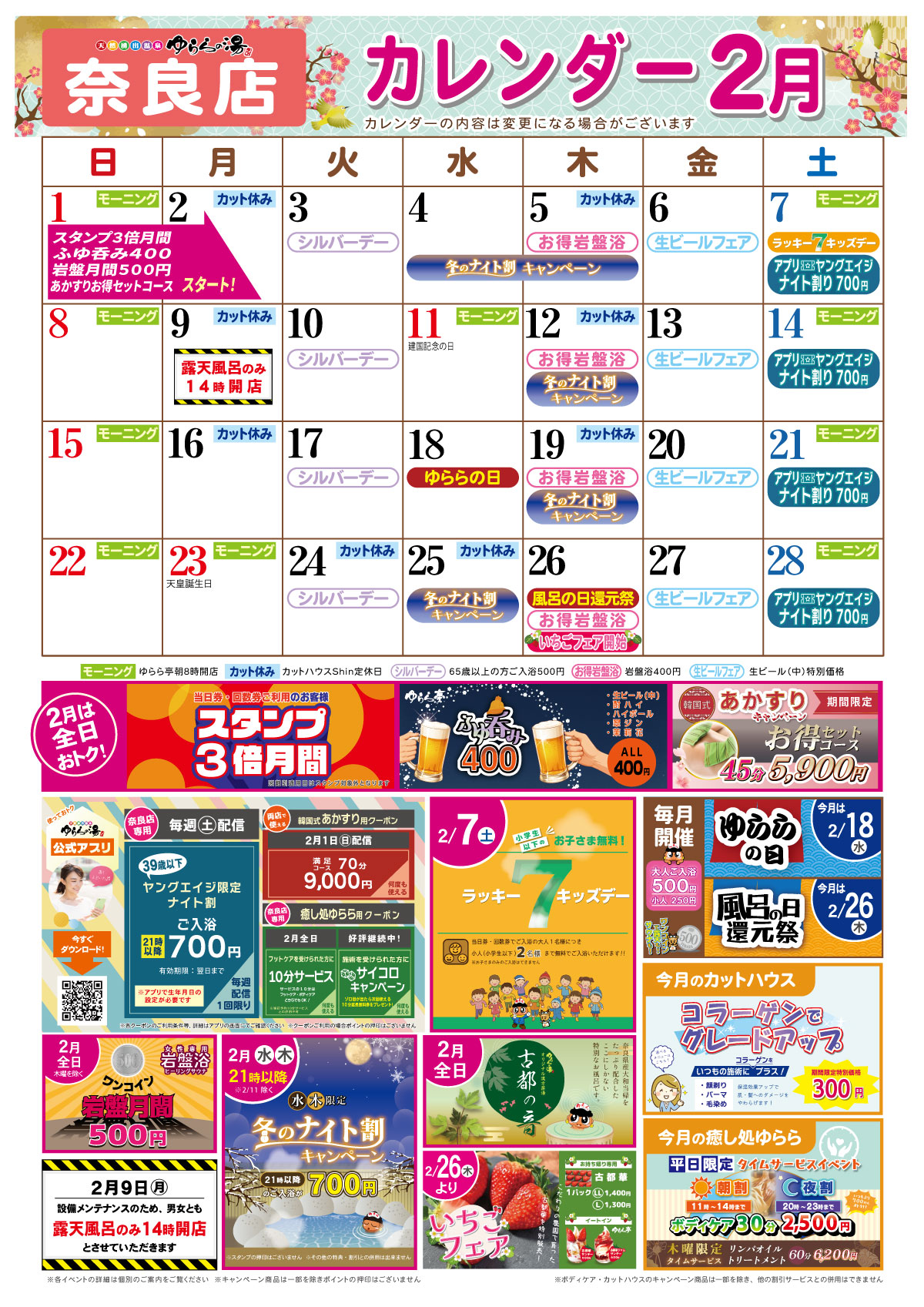 ※2/18(ゆららの日)2/26(風呂の日還元祭)は終日500円です - 対象:当日券でご入浴の大人の方