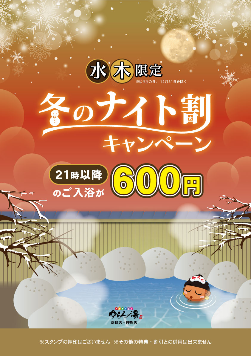 - 期間:12月の水曜日・木曜日※12/17(ゆららの日)・12/31を除く