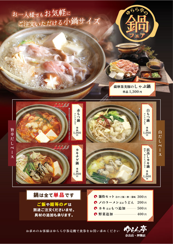 ゆらら亭の鍋フェア