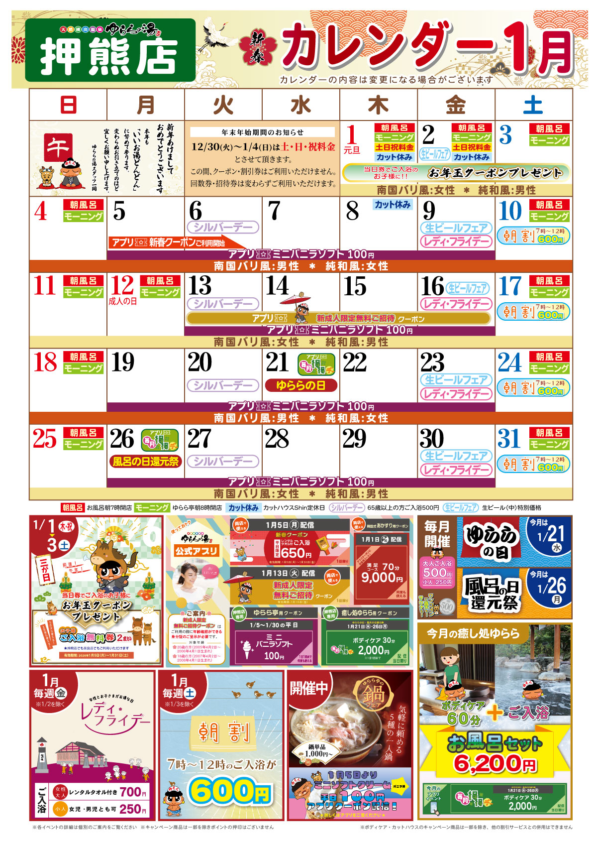 ゆららの湯押熊店 2026年1月イベントのお知らせ