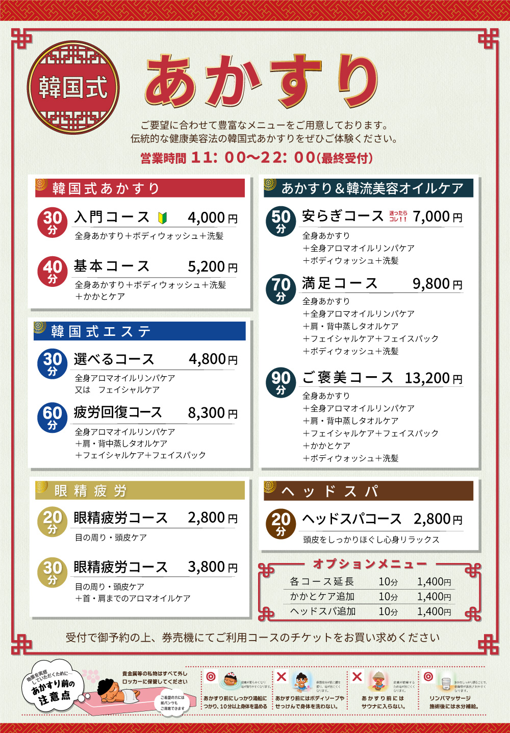 韓国式あかすり メニューのご案内