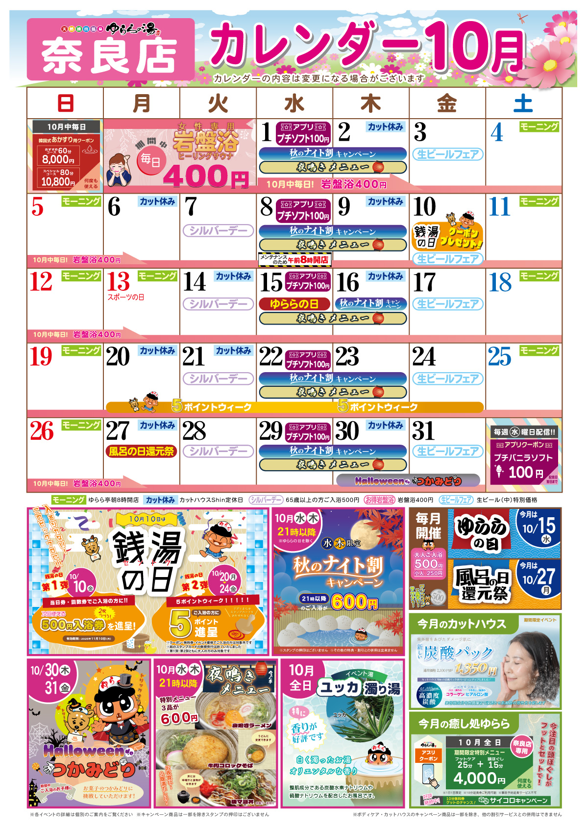 さて、10月のゆららの湯奈良店は…