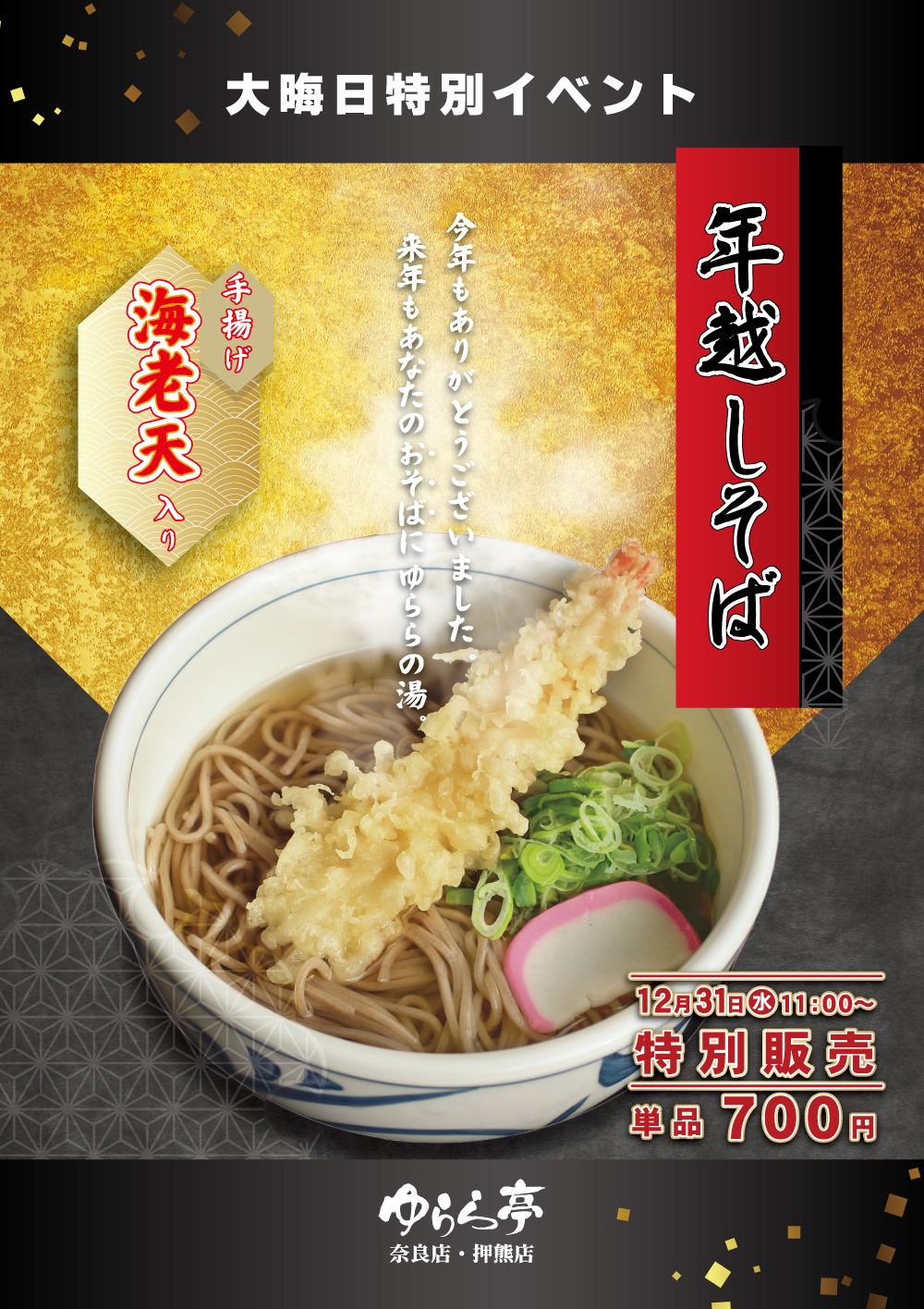 年越しそばはぜひ「ゆらら亭」でお召し上がりください。