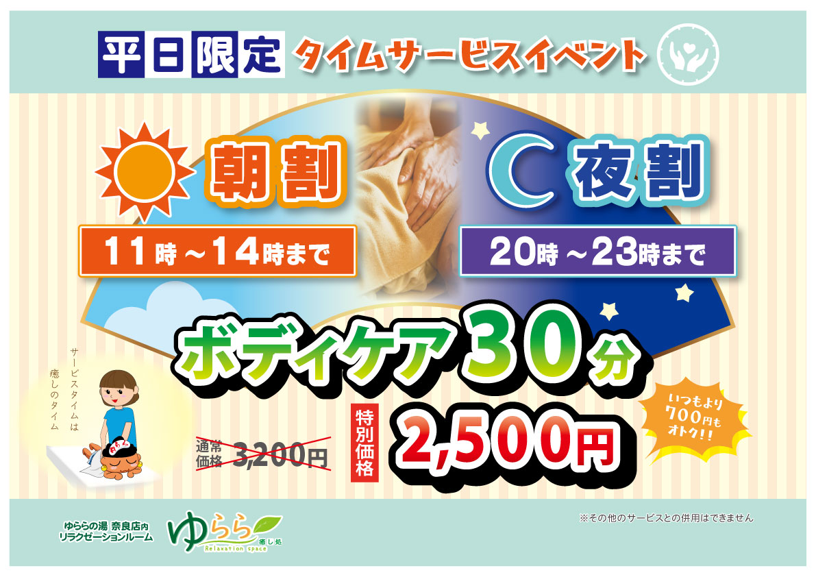 ボディケア30分が 2,500円!