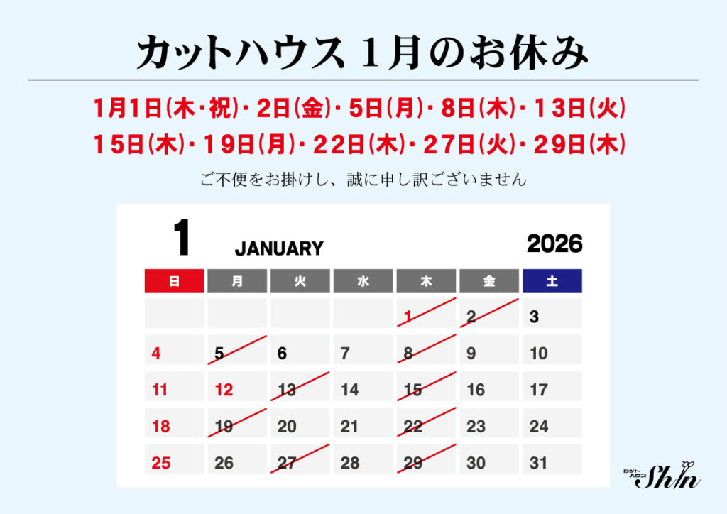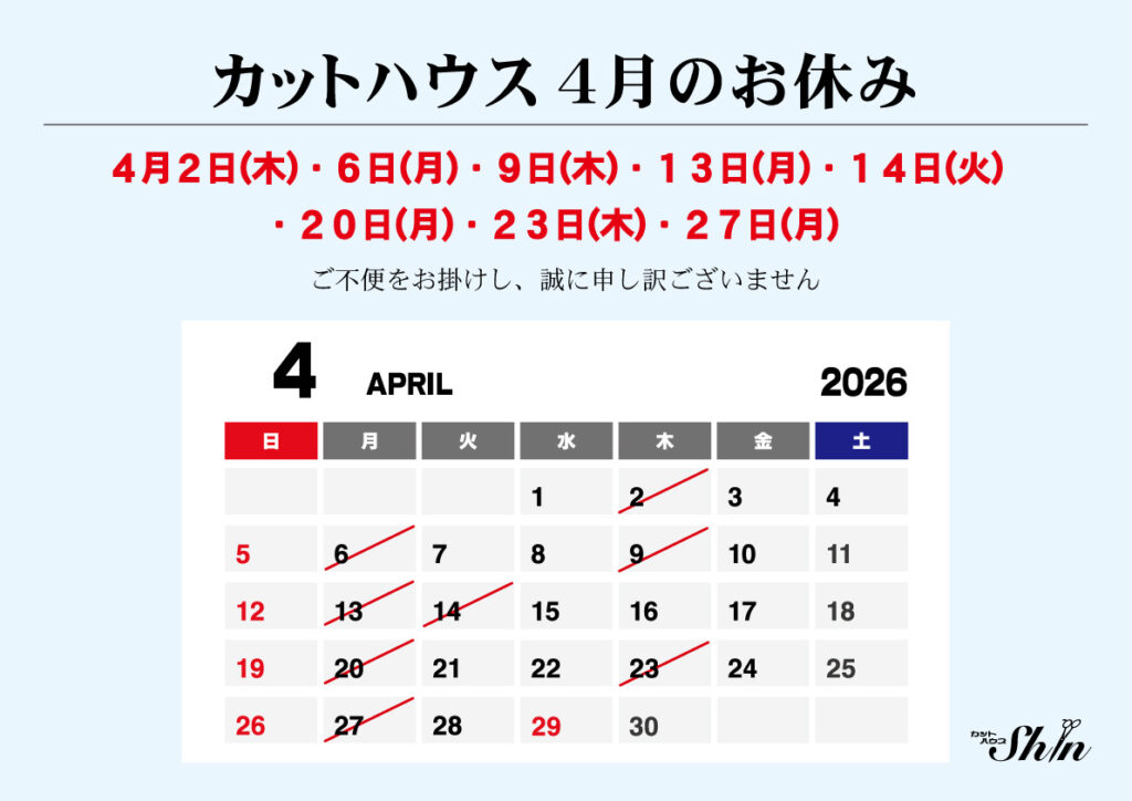勝手ながらカットハウスは休業日を設けさせていただいております。