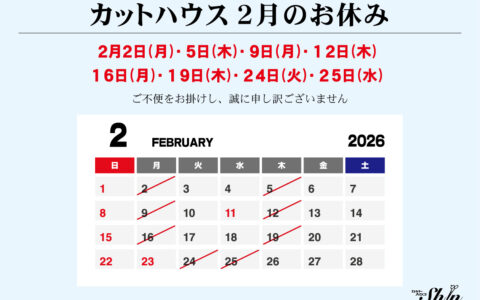 カットハウス 休業日のお知らせ