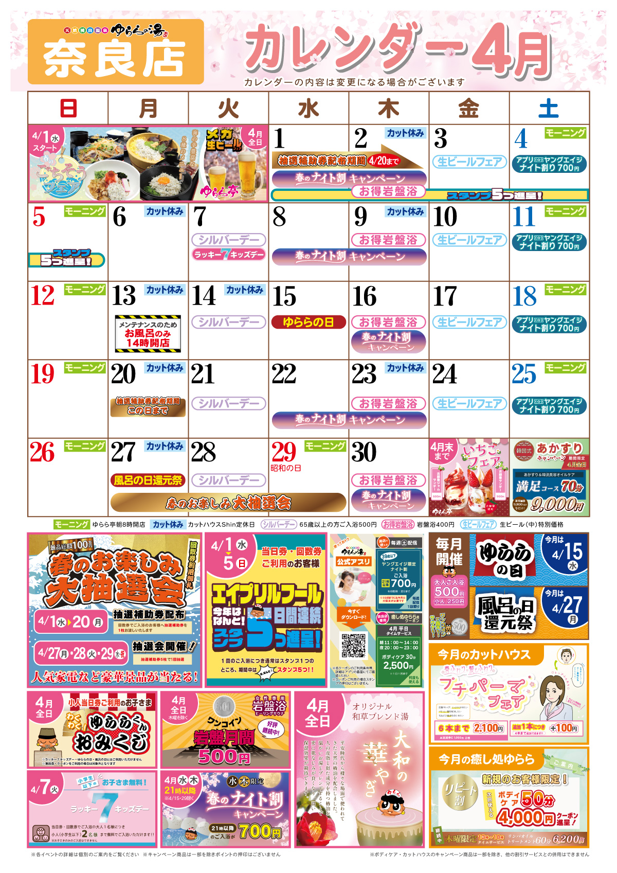 ゆららの湯奈良店 4月イベントのお知らせ