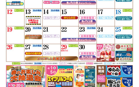 今年も、ゆららの湯から徒歩約1分の桜名所「佐保川」の桜が咲きました。お花見がてら温泉に、温泉がてらお花見に。ゆららの湯で存分にお楽しみください。 豪華景品が当たる! 春のお楽しみ大抽選会! いつもゆららの湯の回数券をご利 … 続きを読む ゆららの湯奈良店 4月イベントのお知らせ