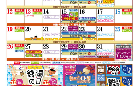 ゆららの湯押熊店 10月イベントのお知らせ