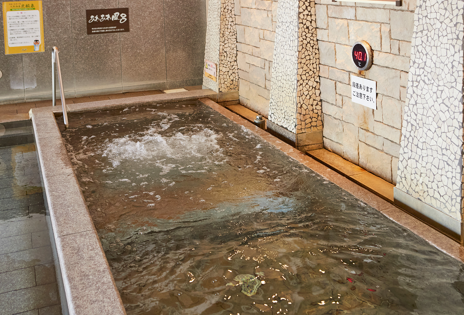 現在、和風/バリ風両浴場のあわあわ風呂に故障が発生しており、気泡が出ない不具合が発生しております。