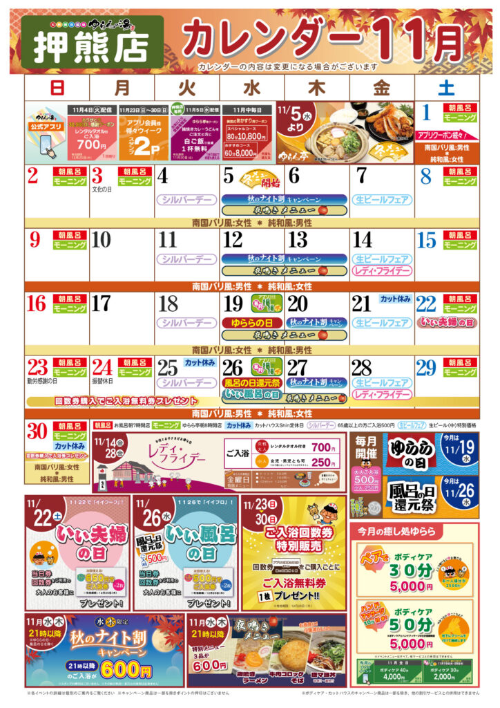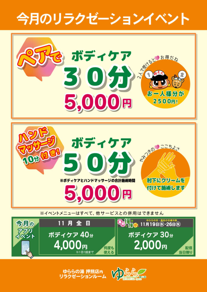 リラクゼーションルーム癒し処ゆらら 今月の特別イベント